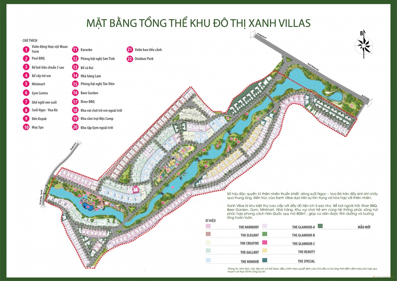 Xanh Villas là khu đô thị sinh thái đẳng cấp tại phía Tây Nam của Đô thị Hoà Lạc, Hà Nội. Huyết mạch của Xanh Villas là dòng suối Ngọc – Vua Bà tràn đầy vượng khí cùng 6,000 cây xanh được ươm trồng hơn 10 năm qua. Toàn khu đô thị được tách xa khỏi nỗi lo bụi bặm của thành phố, mang đến cho cư dân tâm trí thư giãn, sức khoẻ cân bằng, môi trường yên tĩnh biệt lập.
